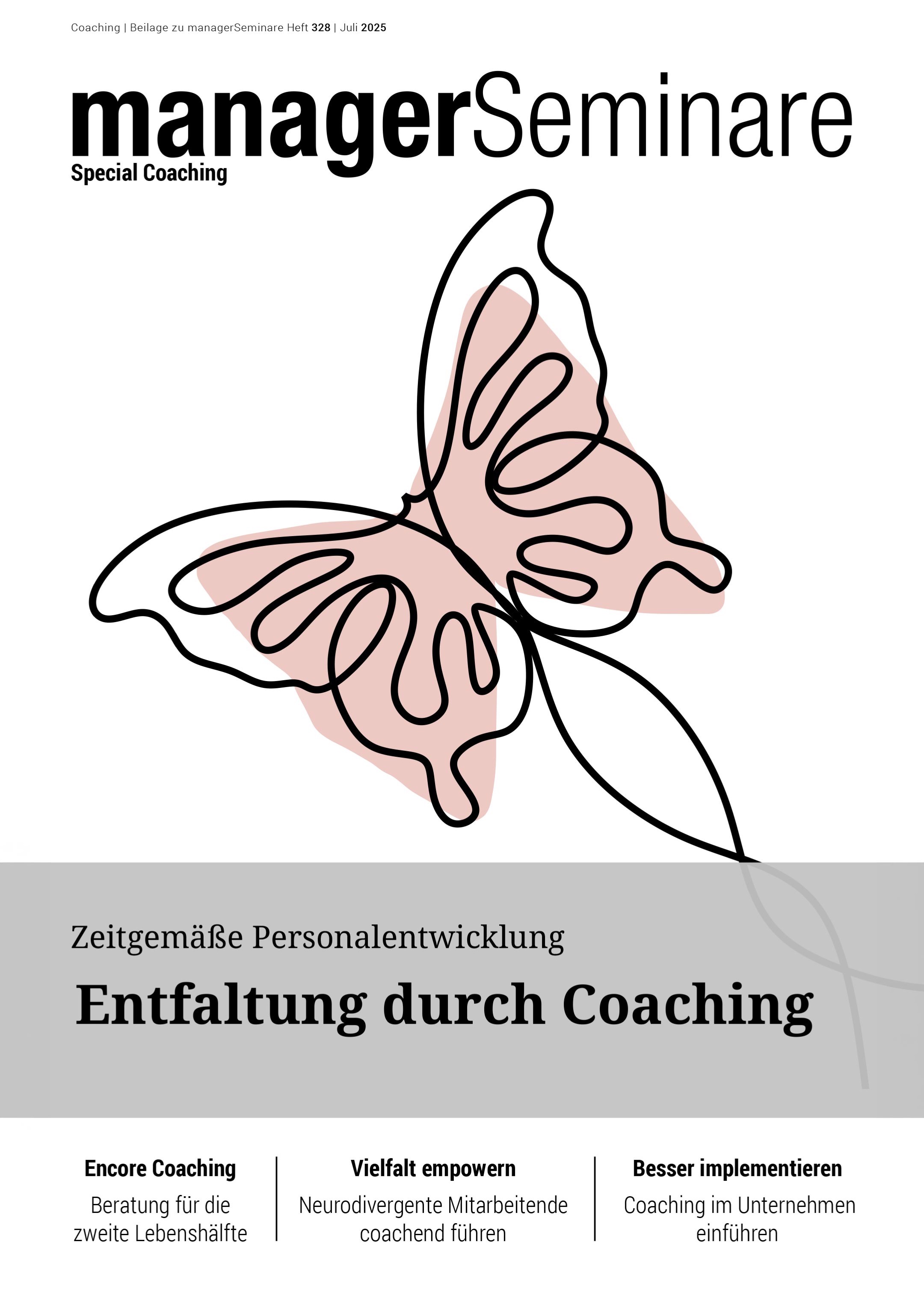 Bei einer bestimmten Gruppe von Mitarbeitenden ist coachende Führung sogar alternativlos: Menschen, die neurodivergent sind, die also kognitiv anders ticken als der Durchschnitt. Davon ist zumindest Petra Russell überzeugt. Im Beitrag „Vielfalt empowern“ schildert die Coaching-Expertin, warum neurodivergente Mitarbeitende besonders von Coachingmethoden in der Führung profitieren und worauf bei deren Anwendung zu achten ist. Denn (coachende) Führung ist im Kontext von Neurodiversität ebenso herausfordernd wie wirksam.
