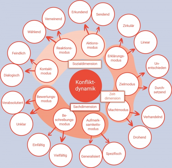 … kein Missgeschick im menschlichen Miteinander, sondern etwas, was überall stattfindet, wo Interessen und Sichtweisen aufeinandertreffen. Konflikte sind demnach auch nicht zu lösen, sondern nur (vorübergehend) zu beruhigen – und müssen bisweilen sogar verschärft werden.