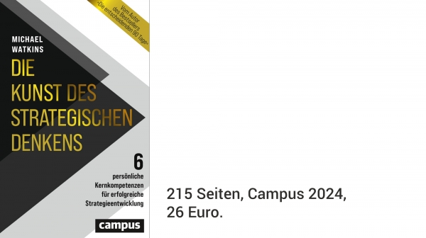 Michael Watkins beschäftigt sich in seinem Buch mit der Bedeutung des strategischen Denkens für die Führung von und in Unternehmen. Zunächst sucht er zusammen mit der Leserin bzw. dem Leser nach einer Definition für strategisches Denken und grenzt es im Anschluss von kritischem, kreativem und gestalterischem Denken sowie vom Kontextbewusstsein ab. Dann erläutert er sechs persönliche Kernkompetenzen für eine erfolgreiche Strategieentwicklung in jeweils einzelnen Kapiteln: Mustererkennung, Systemanalyse, geistige Beweglichkeit, strukturierte Problemlösung, Vision und politisches Geschick. Zum Schluss zieht er ein Fazit, in dem er der Leserschaft die Empfehlung gibt, das eigene strategische Denken permanent zu trainieren. Bei der Auseinandersetzung mit den einzelnen Kompetenzen verweist Watkins auf Literatur anderer Autoren. Er verbindet bestehende Konzepte und Modelle (z.B. Design Thinking) mit seinem Denkansatz und gibt der Leserin bzw. dem Leser durch Empfehlungen und praktische Übungen eine Hilfestellung für die Umsetzung. Watkins ermutigt die Leserinnen und Leser, dass strategisches Denken erlernbar ist und durch das Training der sechs Kompetenzen aufgebaut und verbessert werden kann.