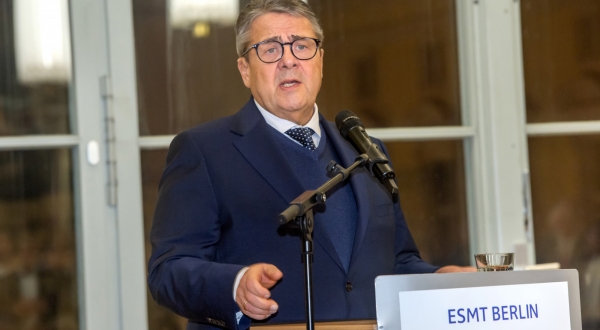 Sigmar Gabriel bei seiner Dankesrede anlässlich der Verleihung der Ehrensenatorwürde der ESMT.