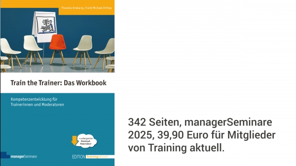 Übersicht Ansprechpartner„Train the Trainer“ – für Theresia Amelang und Frank Michael Orthey heißt das: Weiterbildungsprofis müssen lernen, bewährtes und erprobtes Wissen individuell auf Personen und Kontexte zuzuschneiden, um lebendige Lernprozesse zu ermöglichen. In diesem Sinne ist ihr neues Workbook eine „Train-the-Trainer-Story“ zur Entwicklung und Umsetzung von Trainingskonzepten, die in fünf „Loops“ gegliedert ist.